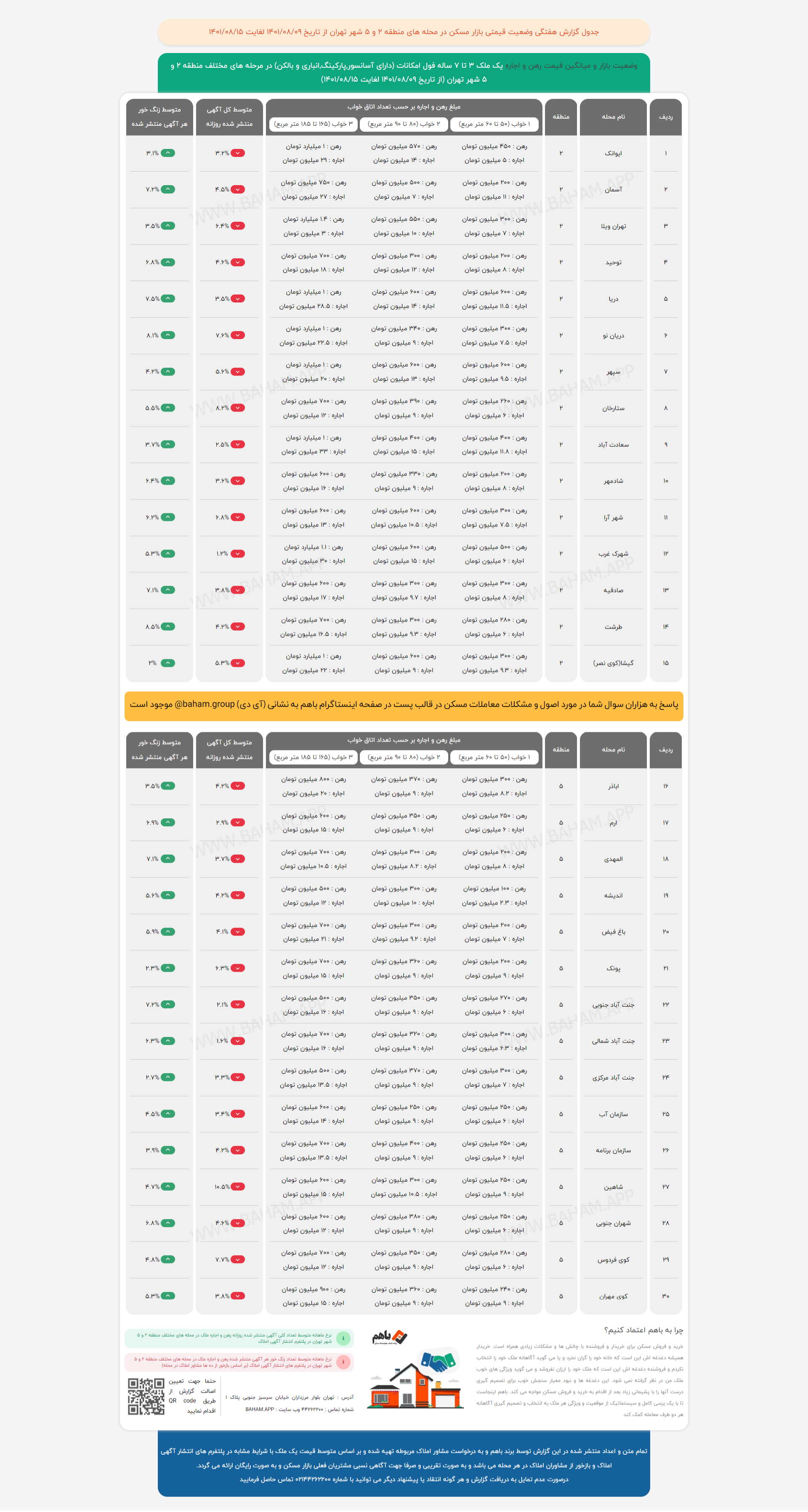 دادهنماهای زیر شرحی از اوضاع قیمتی و نیز رهن و اجاره مناطق ۲ و پنج تهران را در هفته دوم آبان ماه به تصویر میکشد.