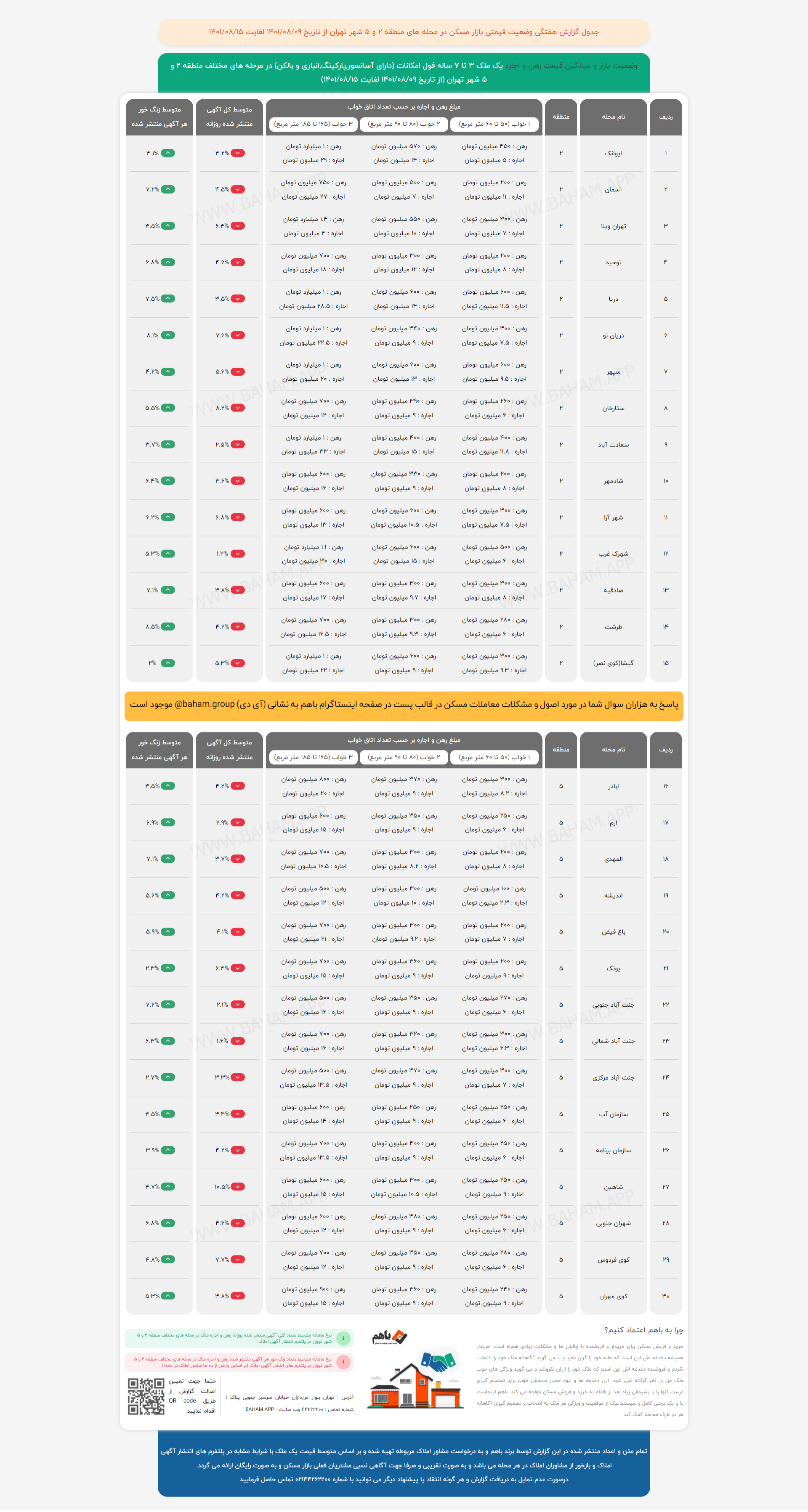 در پیوند با بازار مسکن پایتخت دادهنماهای زیر اوضاع مناطق ۲ و پنج تهران را به تصویر میکشد.