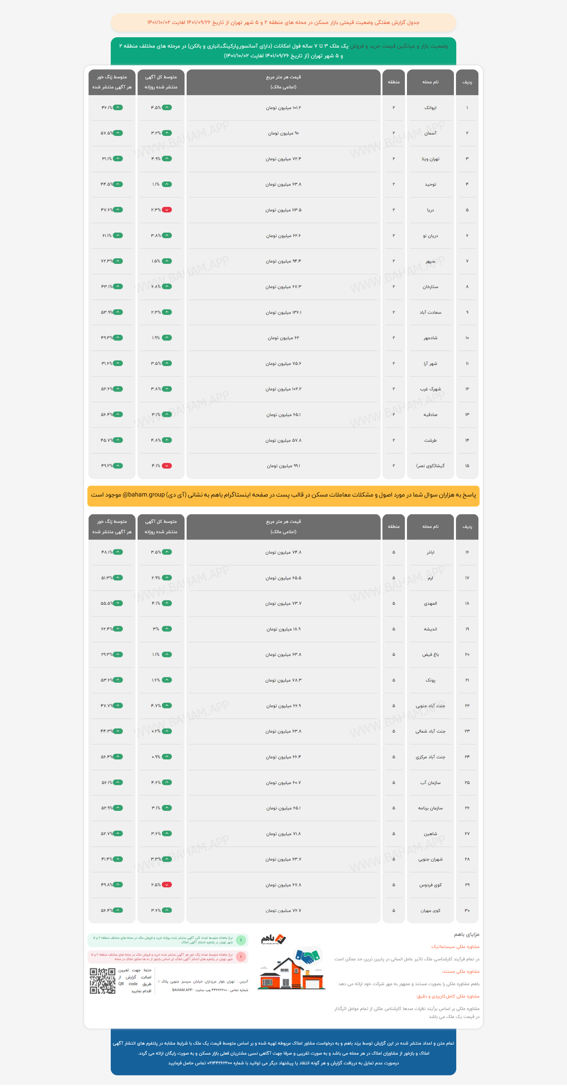 دادهنماهای زیر وضعیت بازار مسکن و رهن و اجاره آن در مناطق ۲ و ۵ پایتخت را نشان میدهد: