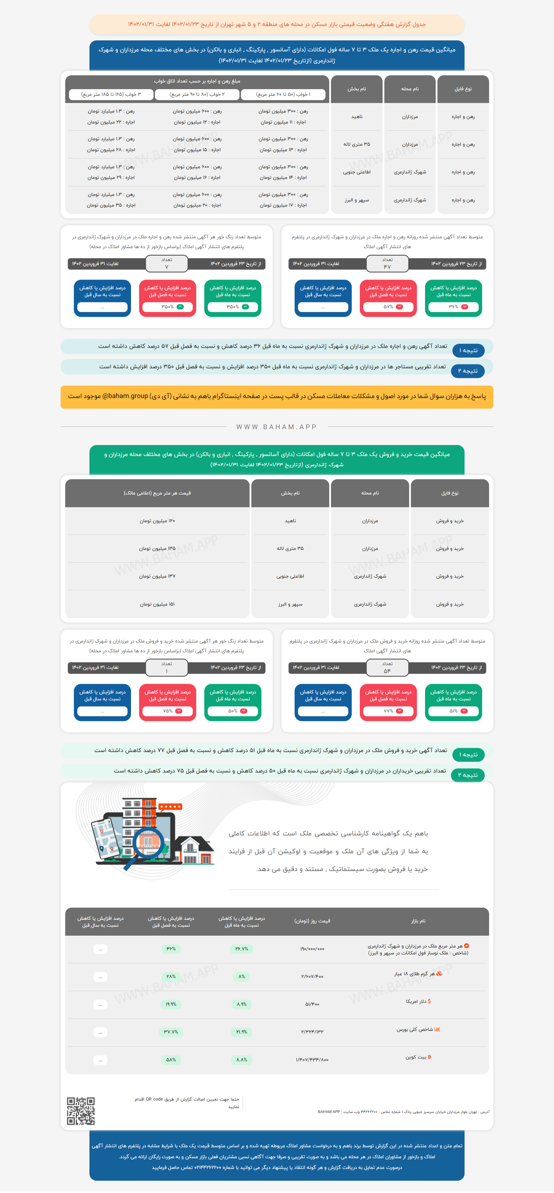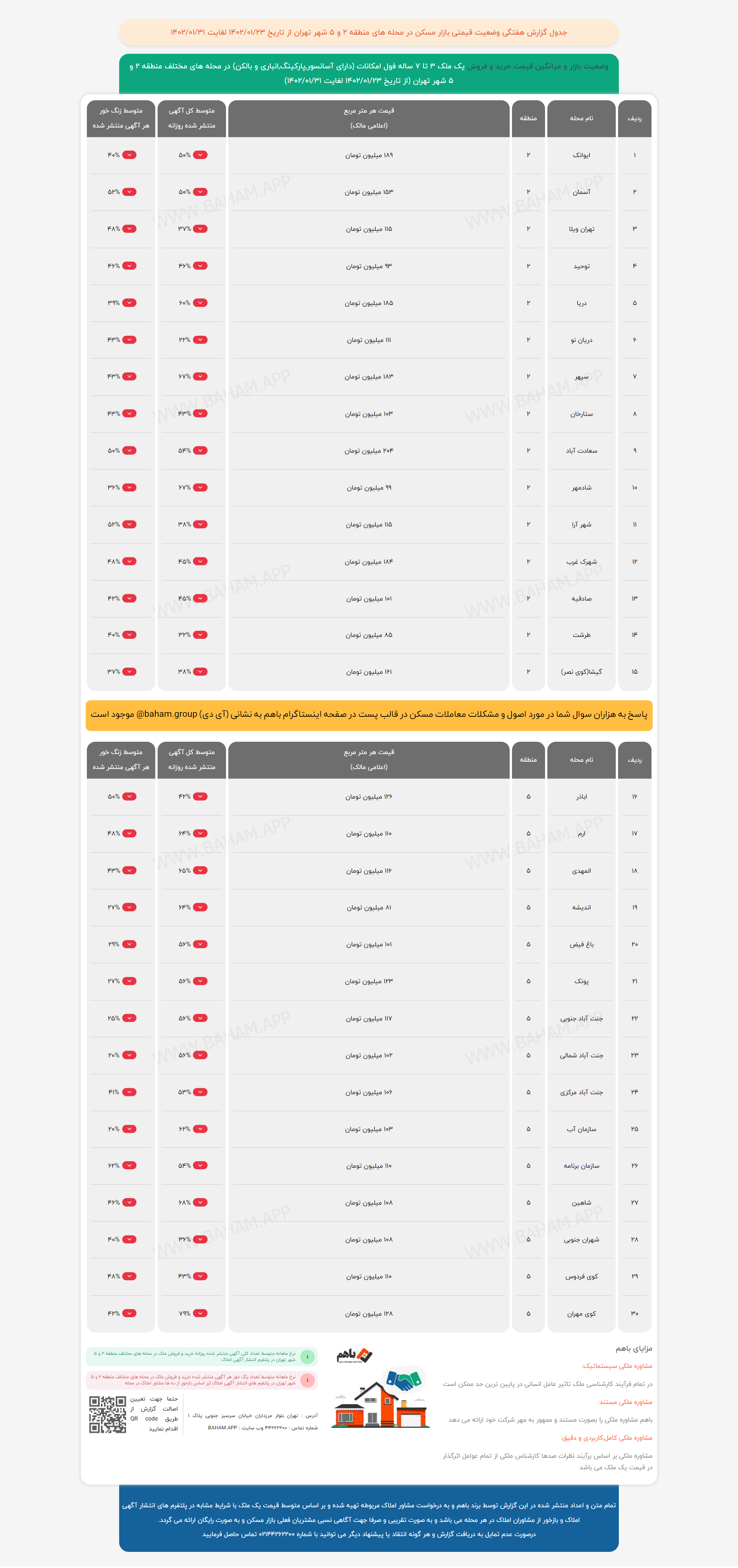 دادهنماهای زیر گزارش قیمتی بازار مسکن در مناطق ۲ و ۵ تهران طی هفته پایانی فروردین ماه ۱۴۰۲ است