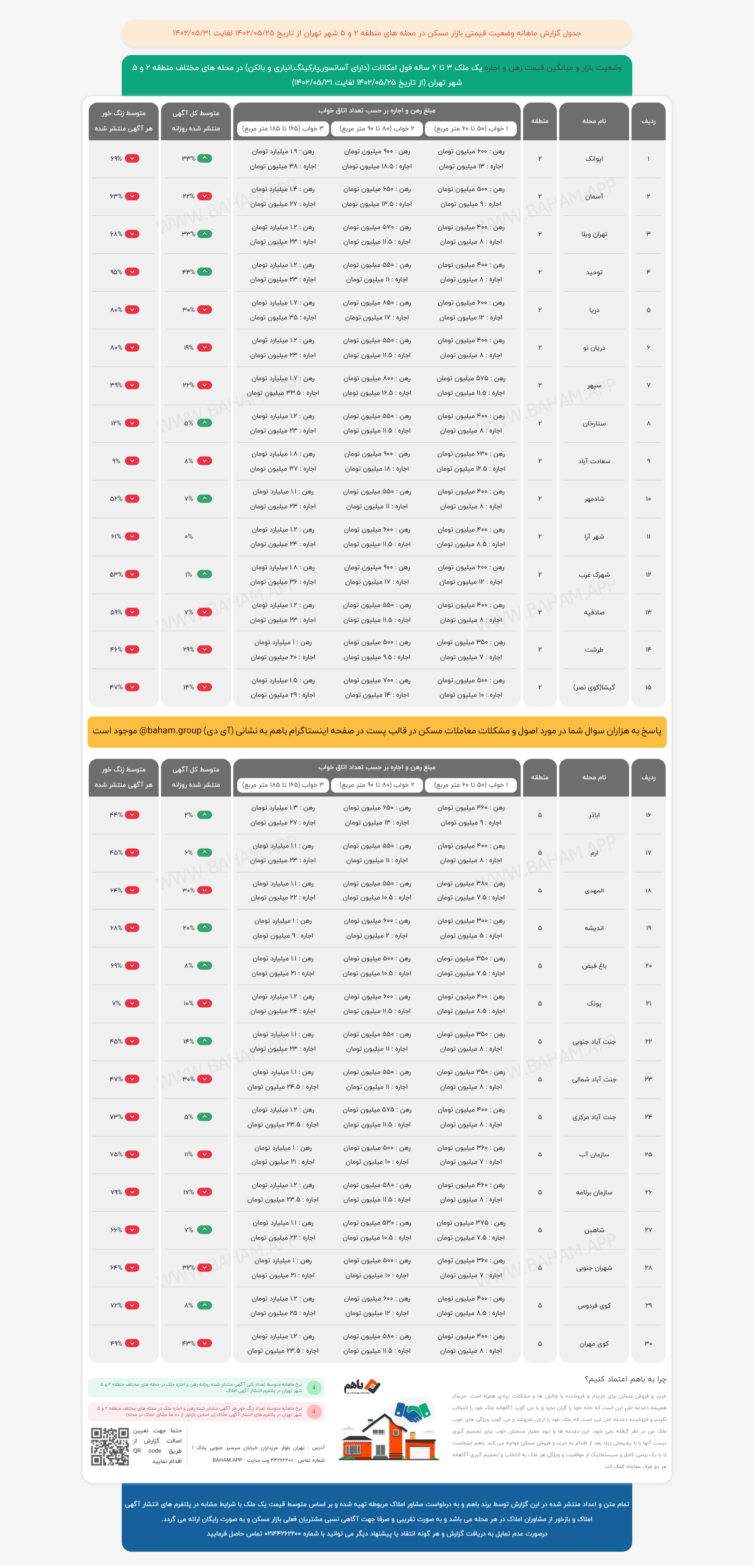 دادهنماهای زیر وضعیت قیمتی بازار مسکن در مناطق ۲ و پنج تهران طی هفته پایانی مردادماه را نشان میدهد: